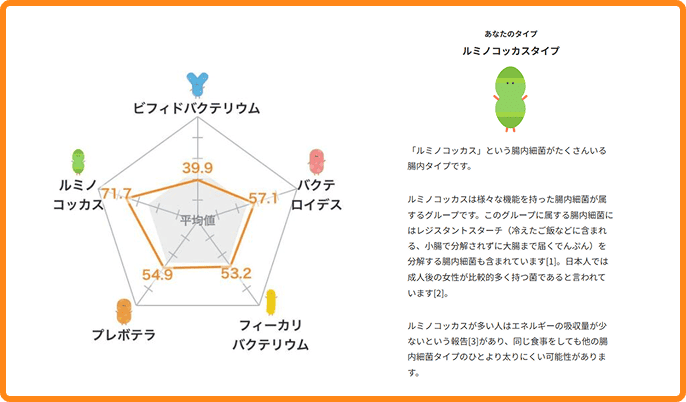 私は「ルミノコッカス」という腸内細菌がたくさんいる腸内タイプでした。